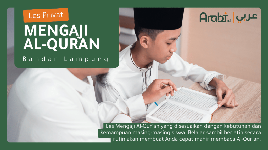 Kursus mengaji Al-Qur’an Bandar Lampung dari Arabi menghadirkan metode belajar modern dan fleksibel. Tersedia les privat mengaji Bandar Lampung secara online via Zoom/Google Meet, atau tatap muka langsung dengan tutor profesional. Setiap sesi pembelajaran disesuaikan dengan kemampuan dan target belajar Anda.